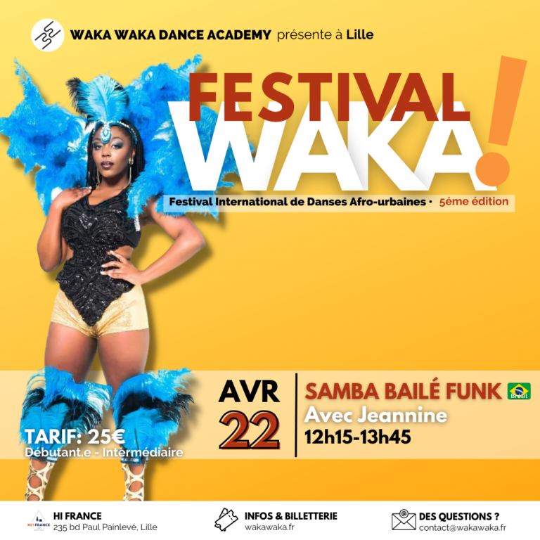 Ca tombe bien, à Waka on donne des cours de samba dans notre école, tous les samedi de 10H-11H30, pour niveau débutant et on te prépare un festival de dingue le 22 avril prochain et devine quoi? La samba y sera mise à l’honneur. C’est vraiment ta dose de bonne humeur et de joie.