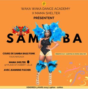 Ca tombe bien, à Waka on donne des cours de samba dans notre école, tous les samedi de 10H-11H30, pour niveau débutant et on te prépare un festival de dingue le 22 avril prochain et devine quoi? La samba y sera mise à l’honneur. C’est vraiment ta dose de bonne humeur et de joie.