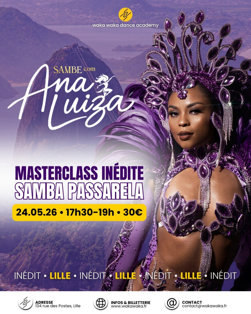 Le dimanche 24 mai 2026, la Waka Waka Dance Academy, école n°1 de danses afro urbaines à Lille, accueille pour la toute première fois à Lille une danseuse brésilienne d’exception : Ana Luiza Carneiro Lira, passista et icône de la Samba Passarela, venue directement de Rio de Janeiro pour une masterclass de samba à Lille inédite et inoubliable. 💃🇧🇷✨