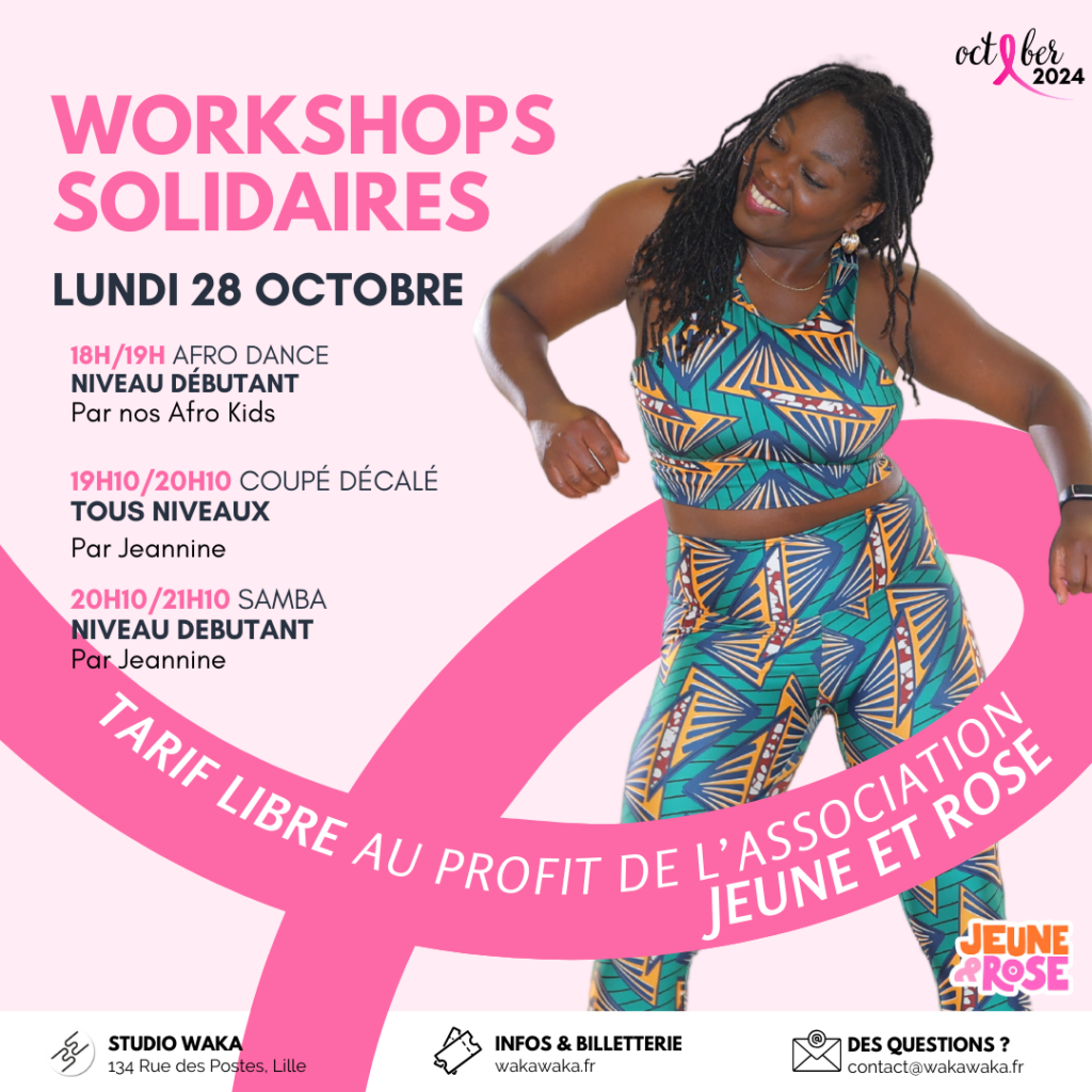 Nom ➕Prénom ➕Cours choisi ➕ Estimation de don à contact@www.wakawaka.fr (Objet : inscriptions stage octobre rose )
